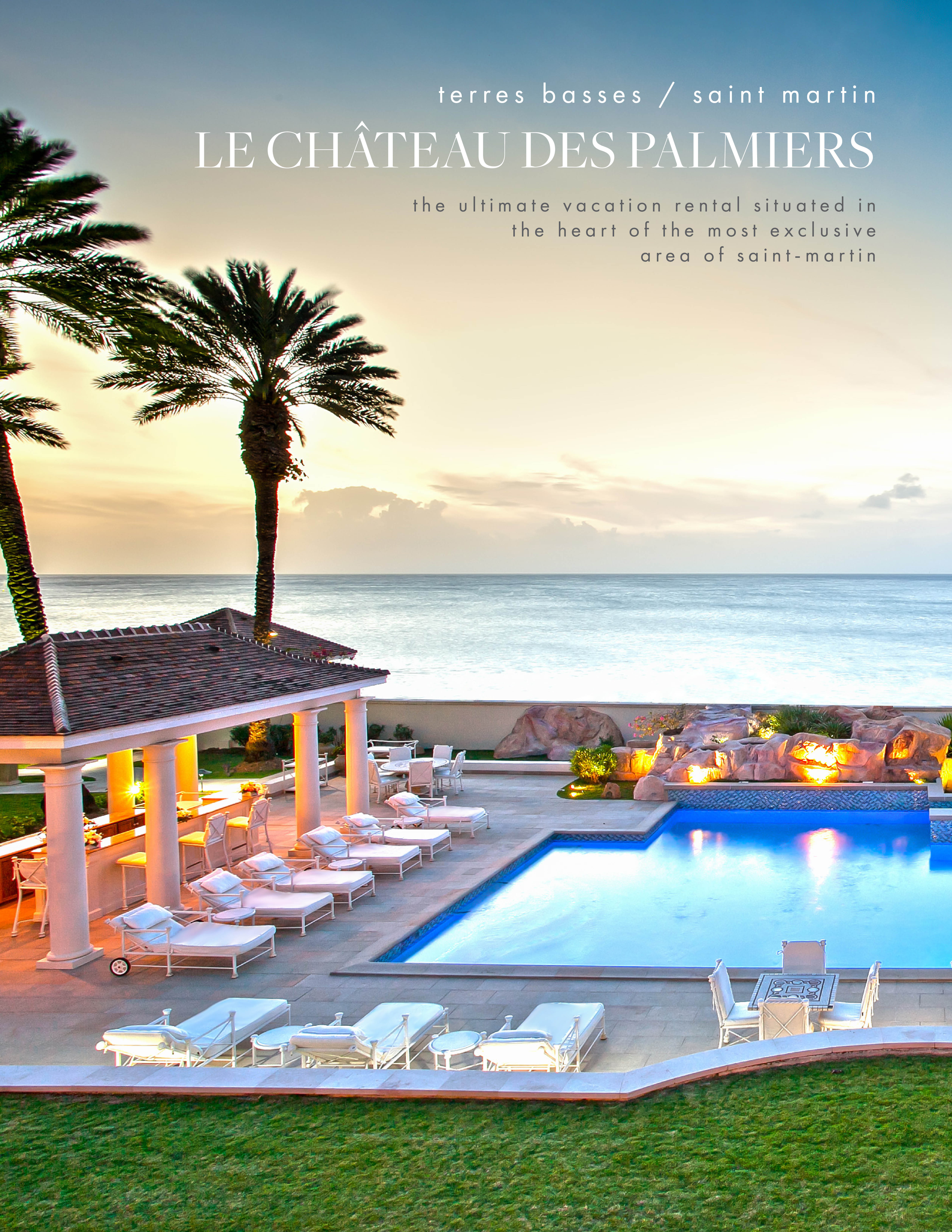 Bought in 2013 by Donald J. Trump, and located in Terres Basses in French St. Martin, Chateau des Palmiers is a breathtaking beachfront estate in an exclusive gated enclave. With a 6 -bedroom ocean side villa and a 4 bedroom garden side villa, the chateau is perched on the beach of Plum Bay, known for its white sand and perfectly rolling waves. The landscaped grounds enhance the elegantly designed villas, with a spectacular heated pool, a tennis court, fitness centers, spa, and dining areas. Every amenity is provided, making this a full service private resort. To ensure complete privacy and safety, there is a state of the art security system, surveillance cameras and an 8 ft. boundary wall. Ideally situated, Chateau des Palmiers is close to Marigot, the capital of the French side of St. Martin, and within 10 minutes from the island’s international airport.