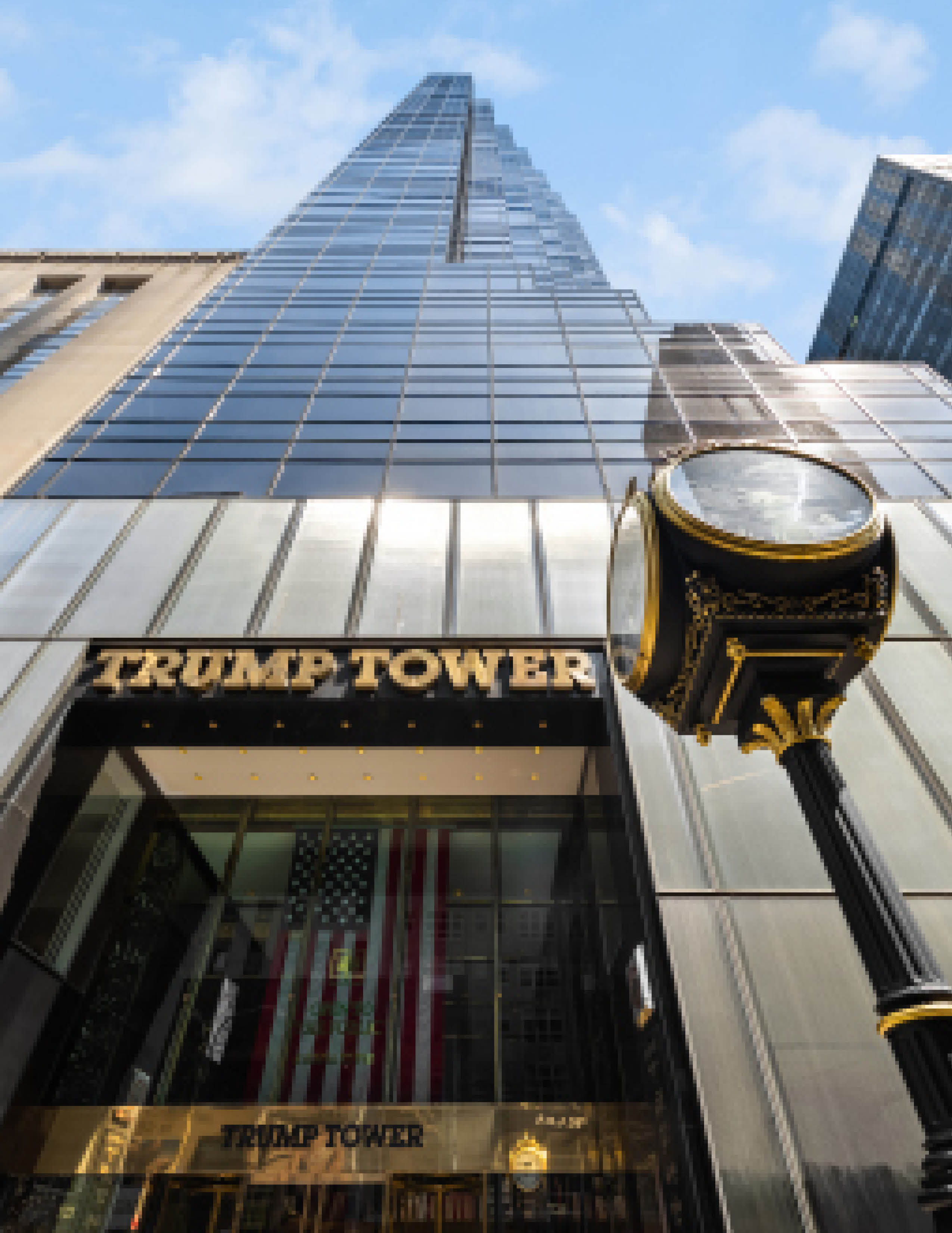 Rising 68 stories above 5th Avenue between East 56th and East 57th streets, Trump Tower is one of New York’s most iconic properties since its completion in 1983. Originally the tallest all-glass structure in Manhattan, Trump Tower is an architectural icon and is situated in one of New York City’s most prime locations. Trump Tower offers unobstructed views of Central Park and midtown Manhattan. The first 26 floors are comprised of luxury offices, catering to Trump Tower’s world-class commercial tenants. Accessible through a private entrance on 56th street, the residential condominiums comprise floors 30 through 68 and are considered one of the world’s elite luxury residential properties. A magnificent waterfall runs through the marble adorned Atrium of Trump Tower where every element is manicured to perfection. With a full service restaurant, Trump Grill, Café and Trump Bar the property provides the finest amenities to tenants, residents and guests. The stunning Gucci flagship store occupies the Fifth Avenue corner of the building adding glamour and style to this spectacular property.